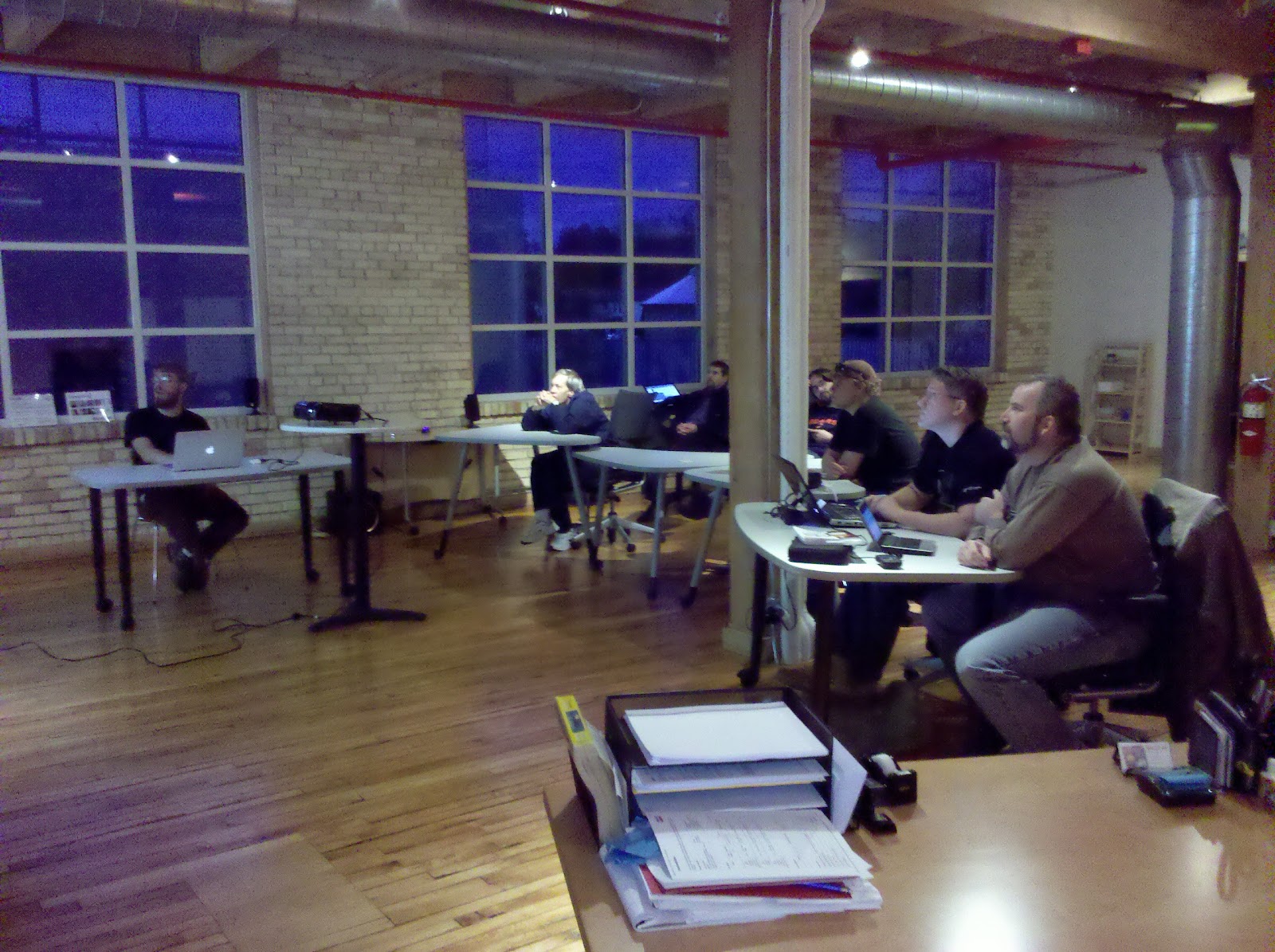 I was given a quick tour of the offices by Mr. Schaap himself, who left shortly afterwards for a romantic rendezvous with his spouse. Due to the facility’s flexibility of purpose, we easily re-configured the room’s furniture and fixtures to better suit our group as members arrived. Our meeting commenced with the usual amount of presentation mixed with helpful suggestions and off-topic banter we’ve come to enjoy.